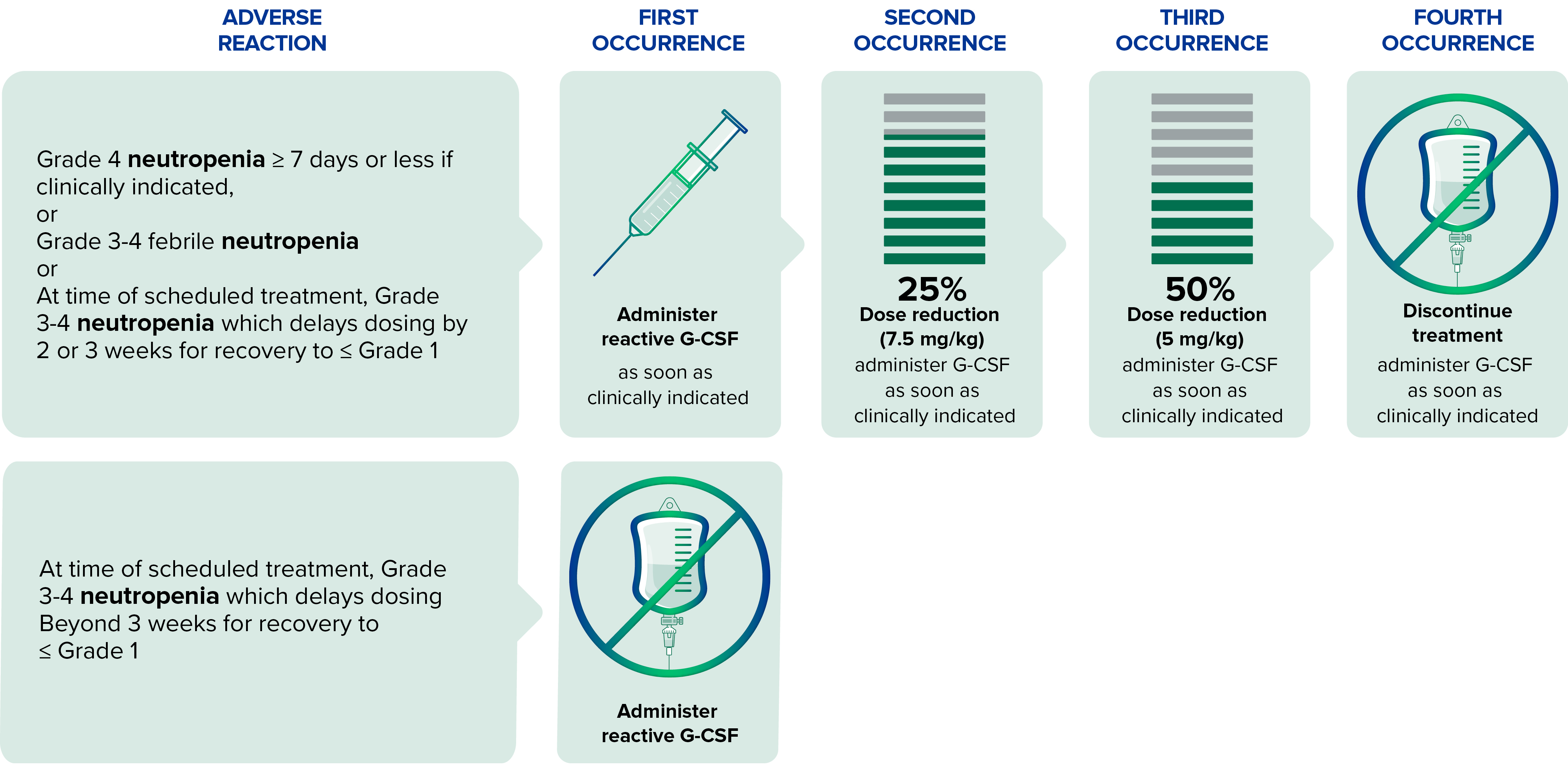 Dose modifications can be made as needed to help manage diarrhoea and other non-neutropenic toxcity1